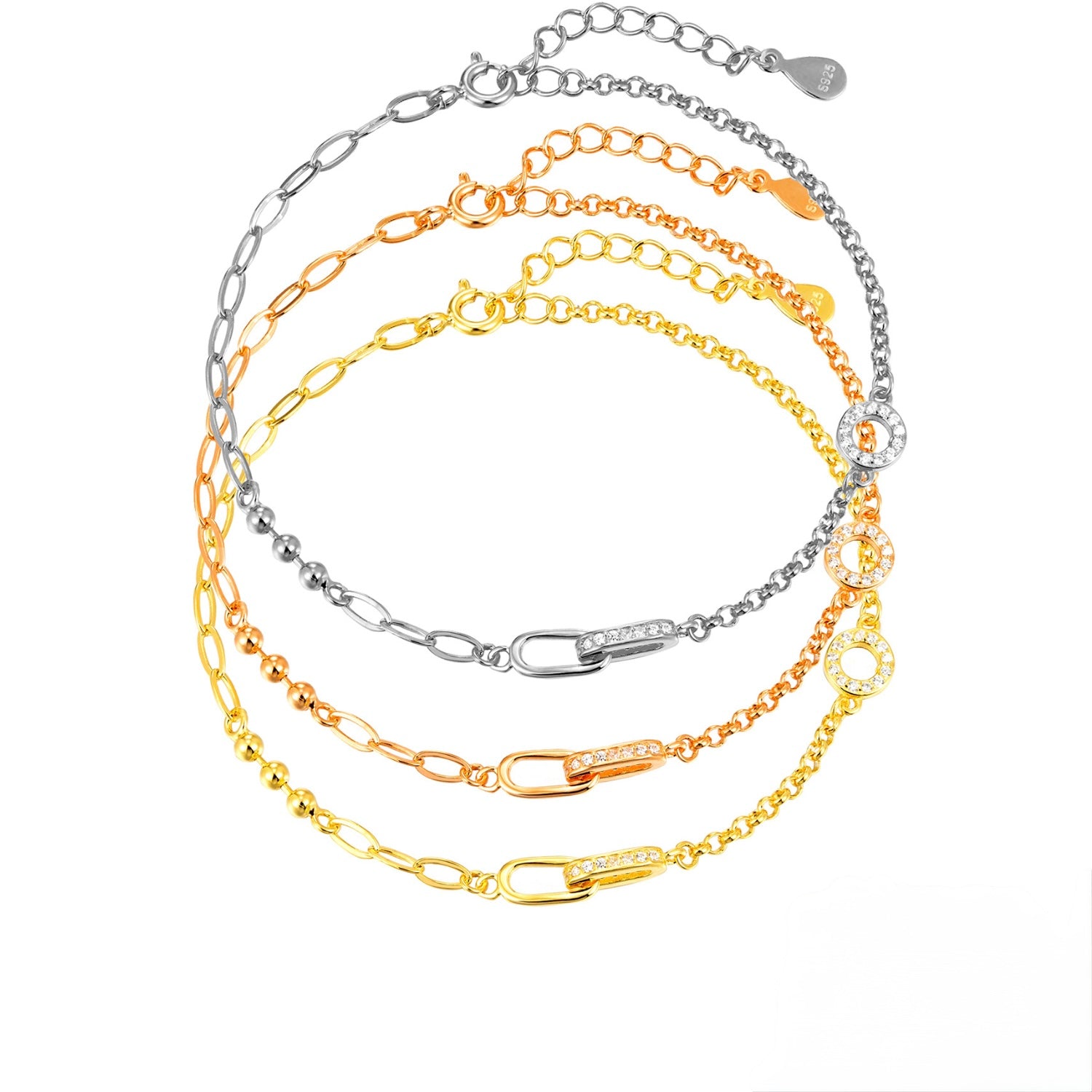Brazalete de plata y circones 6.75-7.75 pulgadas