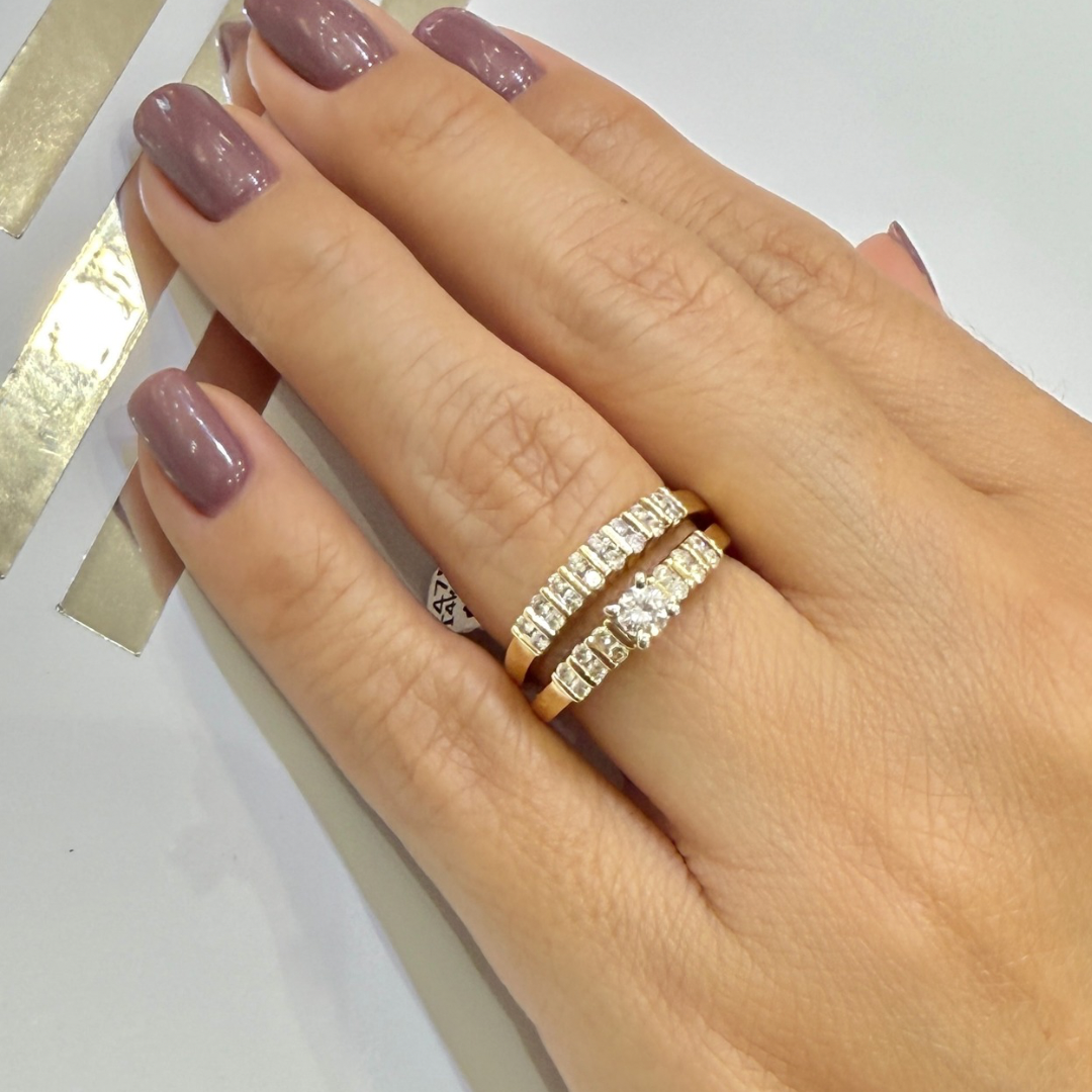 Anillo de compromiso y matrimonio oro amarillo 14k con diamantes 0..63 ct. No.7