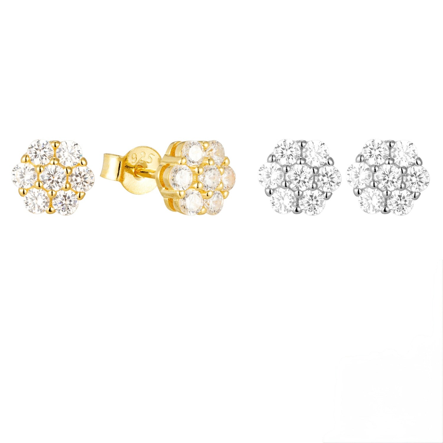 Aretes de plata (baño de oro)y circones 0.5 cms.