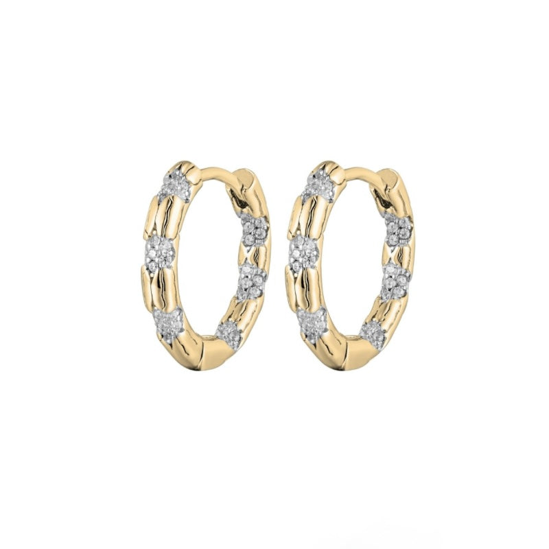 Aretes de plata con baño de oro y circones 1.8 cm.