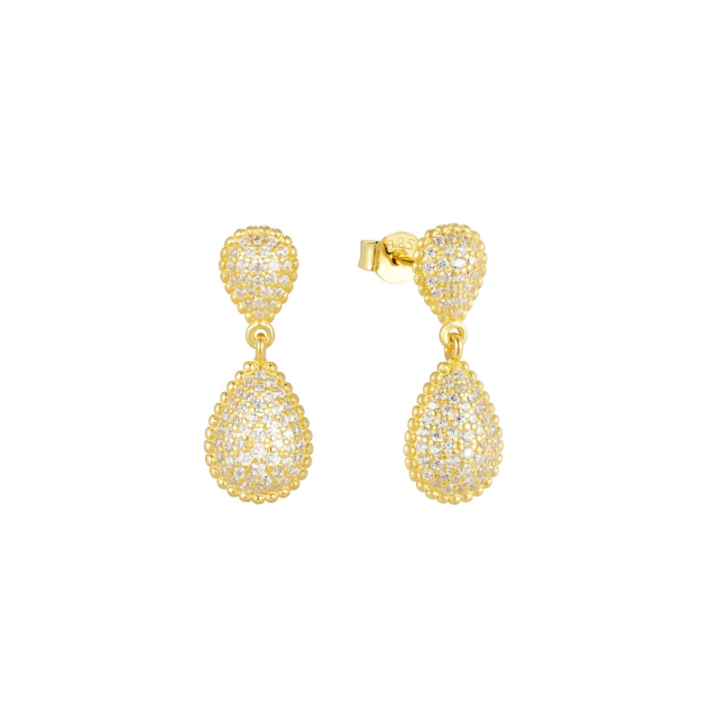 Aretes de plata con baño de oro y circones. 2 cm.