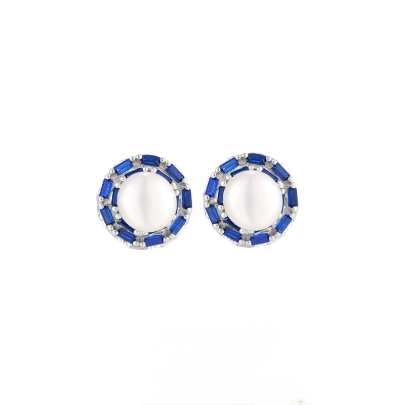 Aretes de plata, perla y circones 1.0 cm.