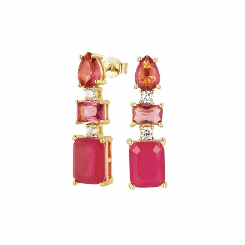 Aretes de plata con baño de oro y circones 2.5 cm.