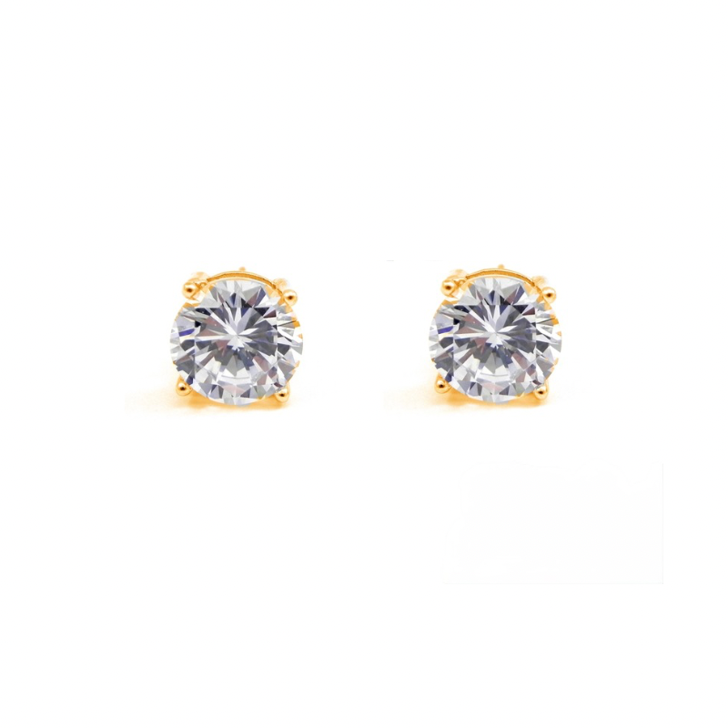 Aretes de plata con baño de oro y circones. 0.7 cm.
