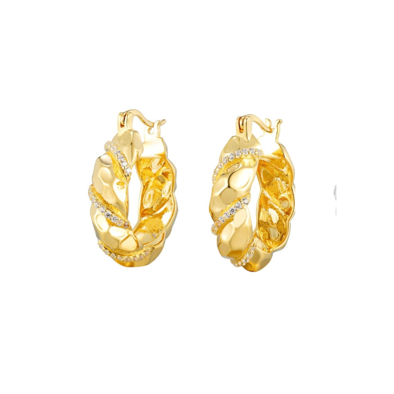 Aretes de plata con baño de oro y circones. 2.8 cm.