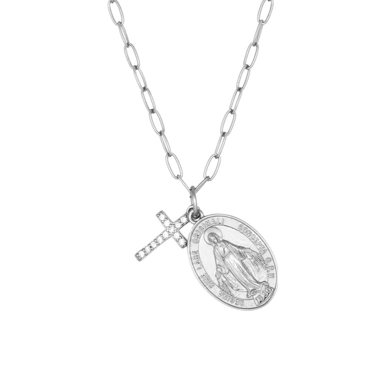 Cadena de plata y circones. 16-18 pulgadas