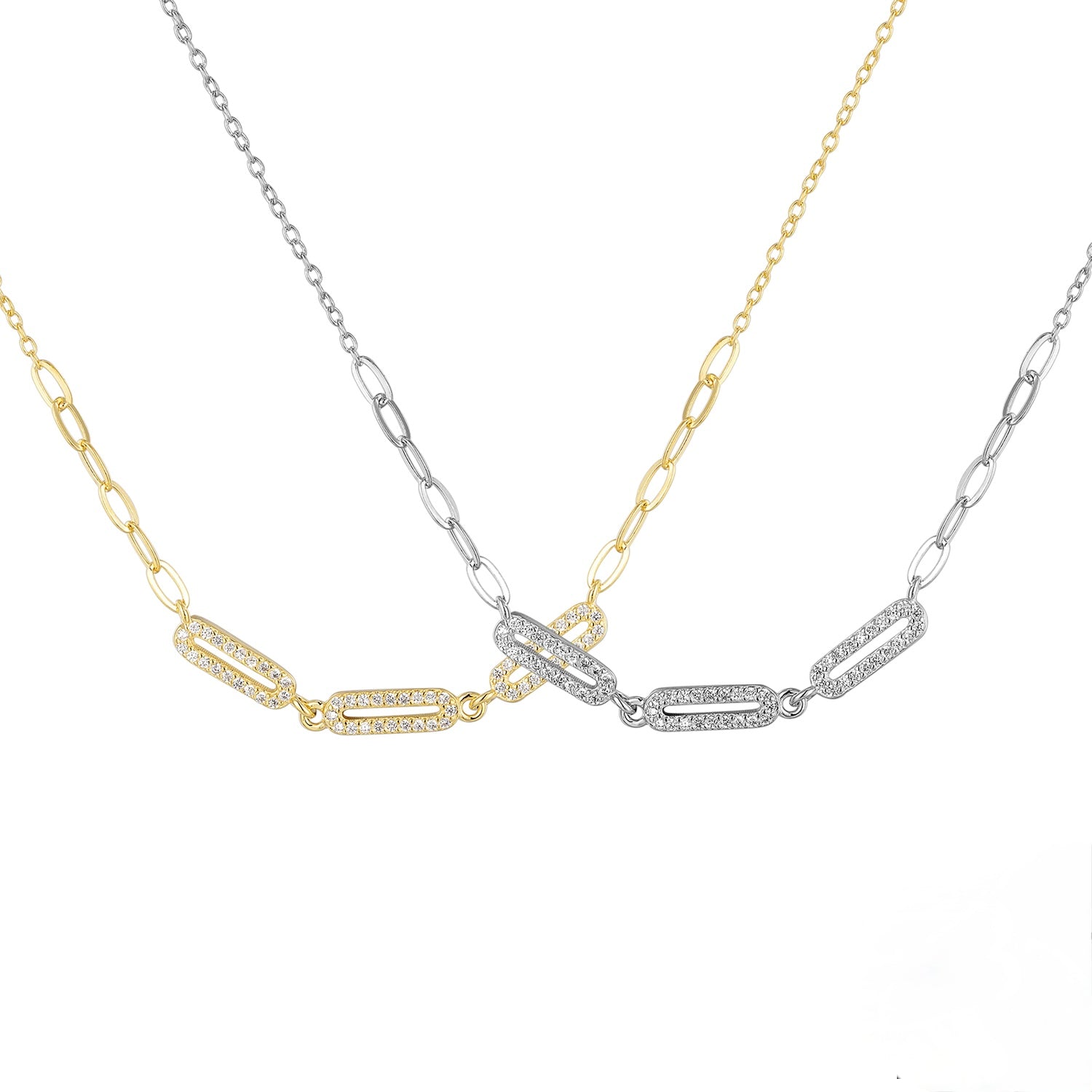 Cadena chocker de plata y circones. 12-16 pulgadas