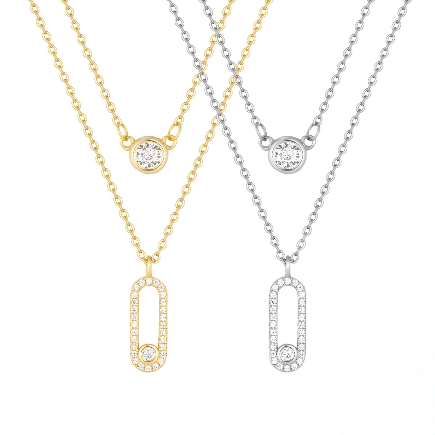 Cadena doble de plata (baño de oro) y circones. Largo 16-18 pulgadas.